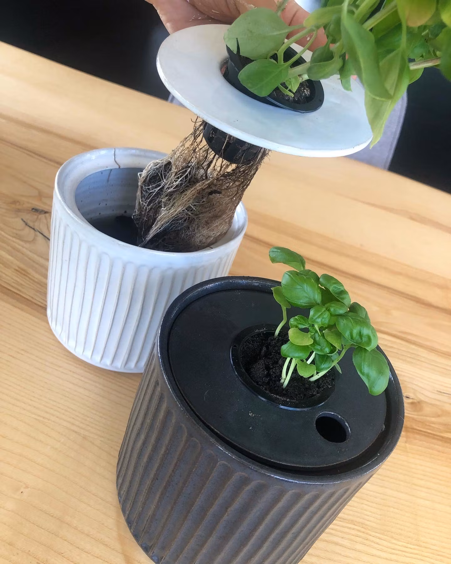 Det här är en kruka för hydroponisk odling, odling i vatten istället för jord. Jag är partisk, men måste säga att jag älskar den och använder flera hemma! Detta är en av mina mest sålda produkter.