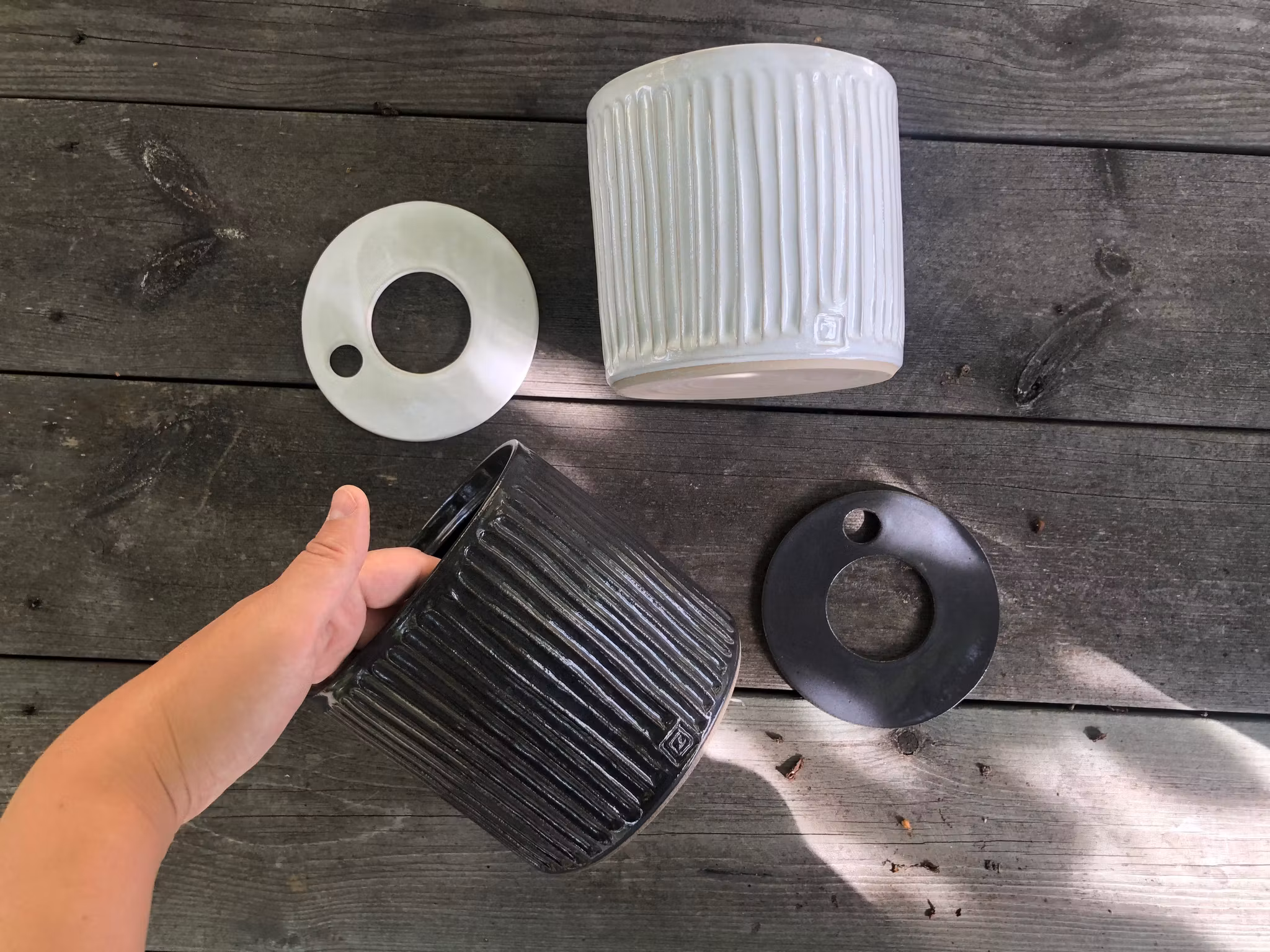 Designen är min egen och jag drejar och dekorerar krukorna själv. Jag skickar med en liten nätkruka till varje hydrokruka. Det enda du köper till är flytande näring för hydroponisk odling, vilket finns i trädgårdshandeln. Lycka till med odlingen!